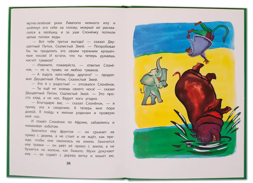 V knigu voshli dve skazki R. Kiplinga - "Otchego u Verbljuda gorb" i "Slonjonok". Na russkij jazyk skazki perevjol K. I. Chukovskij, a stikhotvornye teksty dany v perevode S. Ja. Marshaka. Dlja mladshego shkolnogo vozrasta.