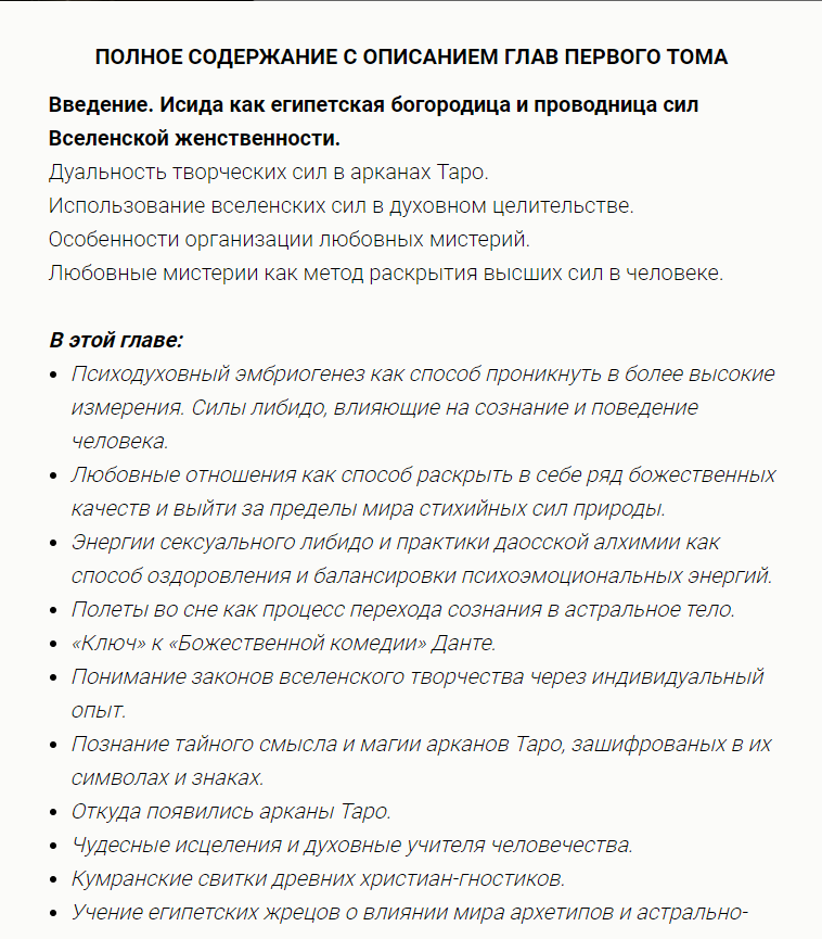 Teorija i kosmogenez nauki Fen-Shuj i zakony astrologii v vostochnoj metafizike. Proiskhozhdenie sil muzhskogo i zhenskogo libido. Tvorchestvo zemnoe i nebesnoe, magicheskie i sakralnye ljubovnye tekhnologii. Praktika raboty s tonkimi energijami. Ljubovnaja magija i daosskaja alkhimija. Usilenie vnutrennikh sil libido. Vnutrennie praktiki i tekhniki omolozhenija.