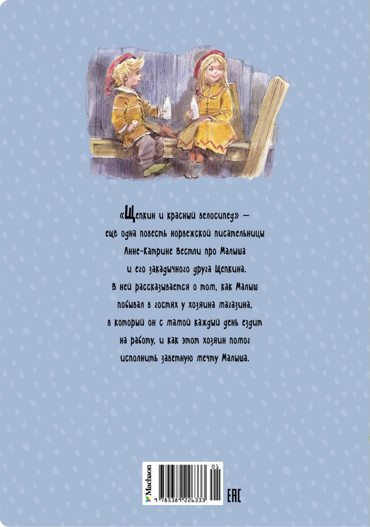 Повести про Малыша и его верного друга Щепкина, которые написала удивительная норвежская писательница Анне-Катрине Вестли, знают так же хорошо, как и её истории про папу, маму, бабушку, восемь детей и грузовик. В повести "Щепкин и красный велосипед" рассказывается о том, что у Малыша появилась заветная мечта и как она осуществилась самым неожиданным образом...