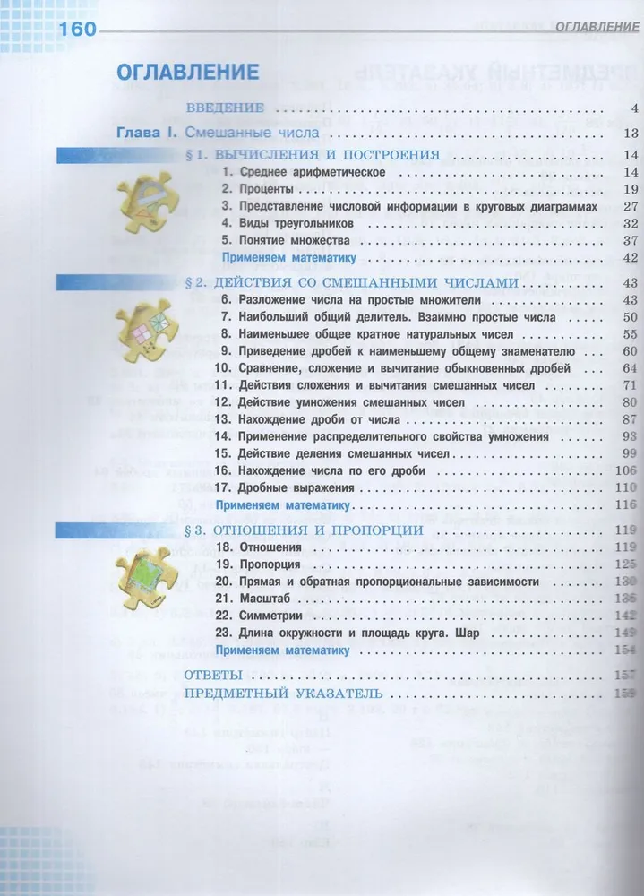 Каждый параграф, в свою очередь, завершается рубрикой "Применяем математику", содержащей задания, показывающие связь математики с другими науками и сферами деятельности.