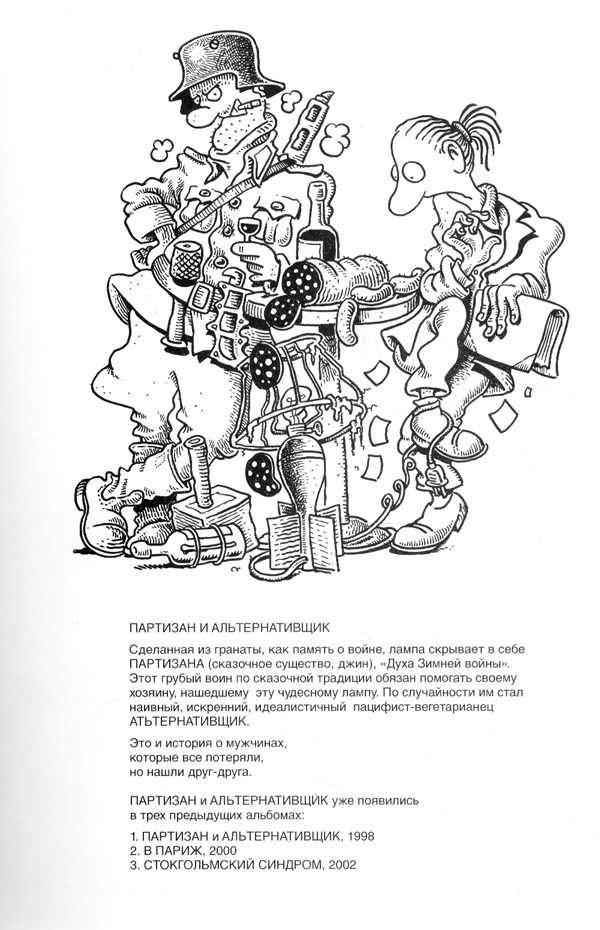 Волею веселого художника Паакканена Альтернативщик и Партизан оказались неразрывно связаны и вместе путешествуют по миру. Теперь судьба забросила их в современную Россию. Партизан сперва долго мозолил военной формой глаза жителям Питера, а потом напился с труппой Мариинского театра. А Альтернативщика во время карнавала избили хулиганы, переодевшиеся в Ахматову, Троцкого, Николая Второго, Стравинского и Ломоносова. Вот так лубочно финны представляют себе Россию.