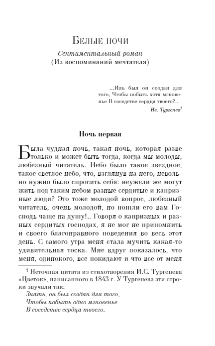 Ф.М. Достоевский - азартный игрок и политический преступник, невротик и философ, "русский Ницше" - стал одним из тех символов русской культуры, которые и по сей день определяют облик России во всем мире. Cентиментальный роман, по определению самого автора, "Белые ночи" и незавершенный роман о страдающем ребенке "Неточка Незванова" - истории крушения мечты. История любви главного героя к девушке Настеньке освещает его одинокую жизнь, но не делает счастливым. Сентиментальные и чувствительные герои не выдерживают столкновения с реальной действительностью. Так судьба Неточки Незвановой предвосхищает появление экзальтированных героинь знаменитых романов Достоевского. В книгу также входит рассказ "Мальчик у Христа на елке".