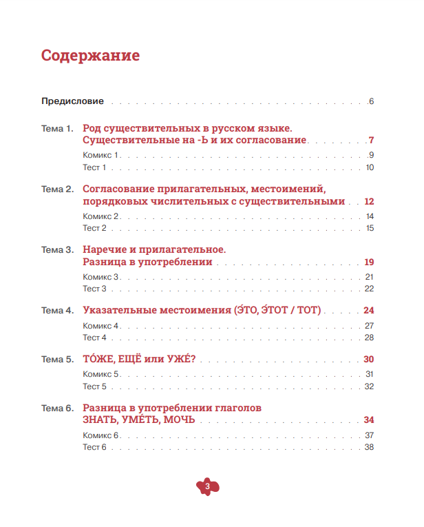The manual covers the most difficult grammatical topics that raise numerous questions among foreigners. Each topic of the manual contains comic tests with the participation of cross-cutting characters, which makes it easier to learn the material and allows you to make the process of learning the Russian language more interesting and entertaining.