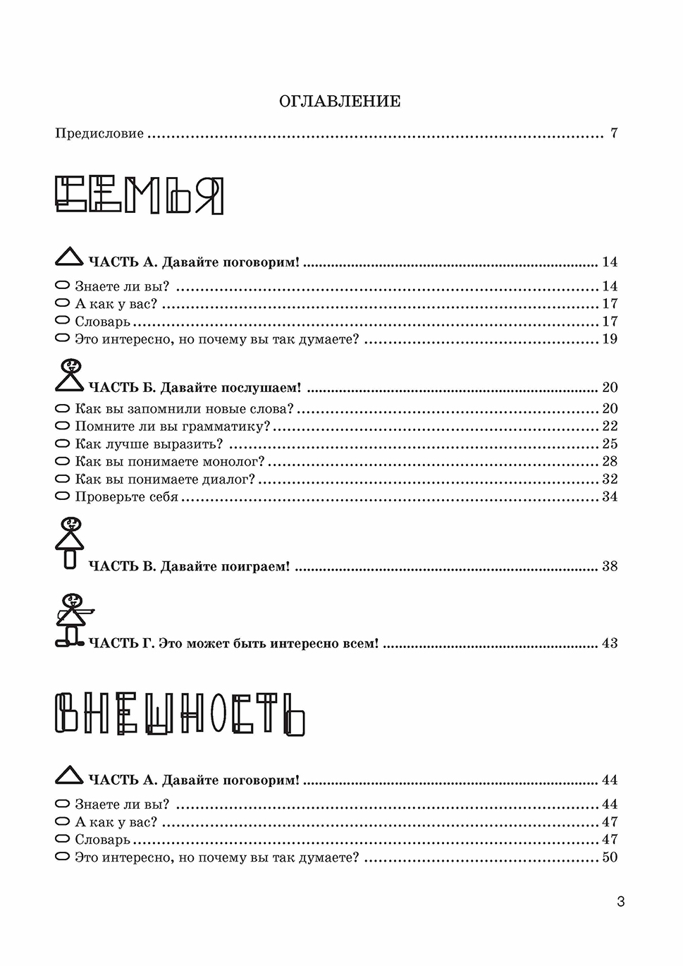 The book is designed for low intermediate students of Russian. It contains varied materials stimulating speaking and listening skills, can be used in classroom discussions and games.