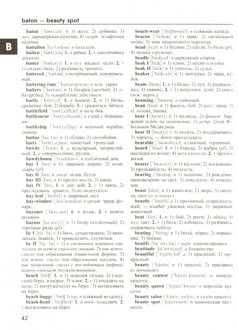 Словарь состоит из двух частей: англо-русской и русско-английской, и содержит около 350000 слов и словосочетаний, наиболее часто встречающихся в современных русском и английском языках. Широко представлена техническая, разговорная, научная и специализированная лексика. Для удобства читателя и исключения ошибок в произношении в словарных статьях представлена транскрипция, принятая по международной фонетической системе.