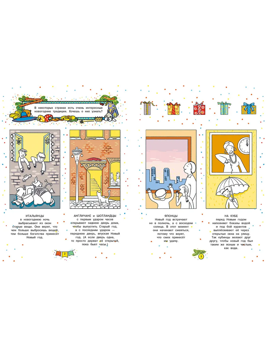 Ура! Новый год уже скоро! А чтобы для вас, дорогие дети и уважаемые родители, предновогоднее время пролетело ещё быстрее, мы сделали эту волшебную книгу. И наполнили ее самыми разными увлекательными заданиями: рисуйте и раскрашивайте, ищите отличия и проходите лабиринты, разгадывайте новогодний кроссворд и мастерите праздничные открытки. И пусть в этот новый год сбудутся ваши самые заветные мечты!
