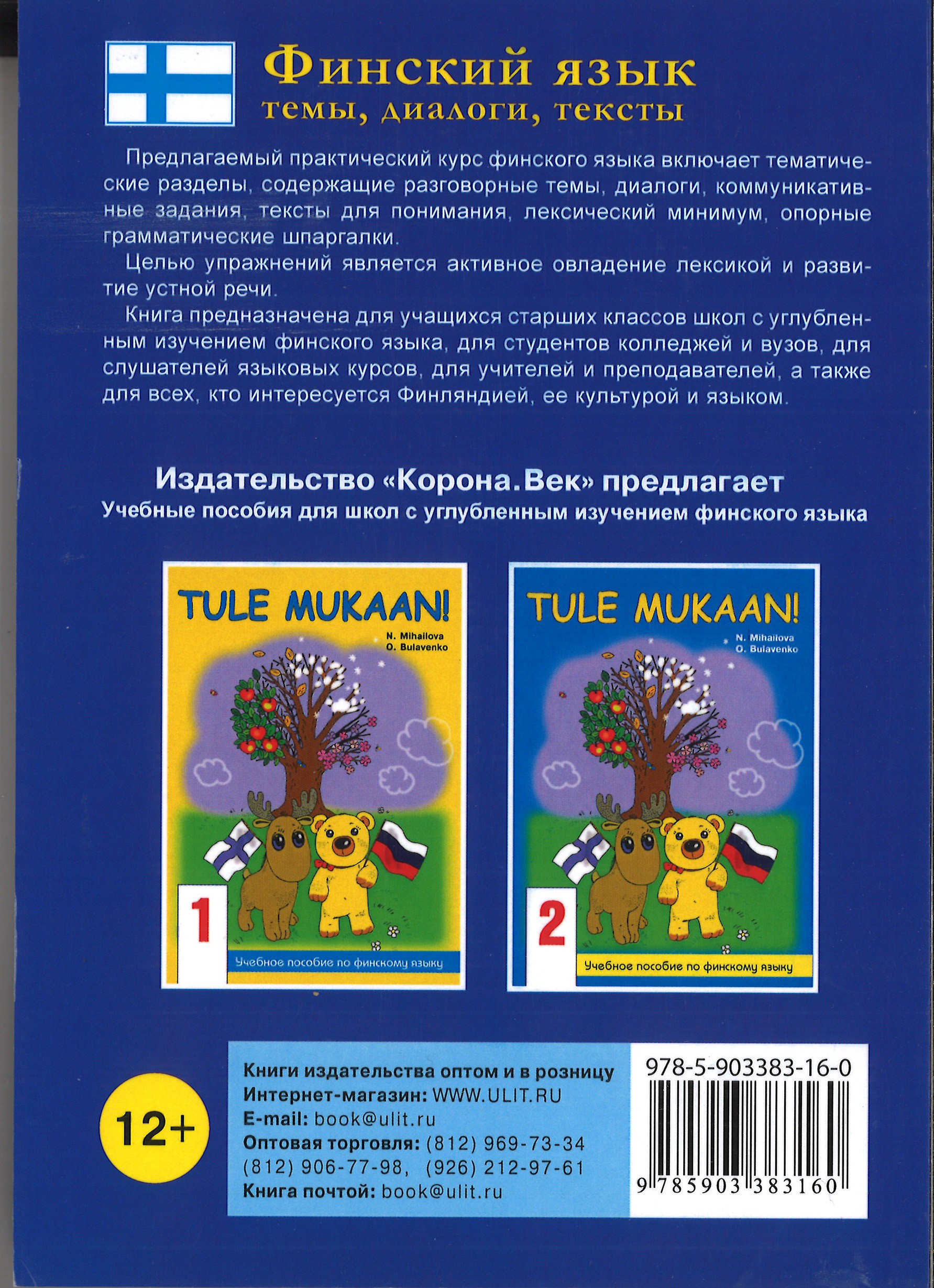 Пособие содержит более 30 тем и диалогов на финском языке с параллельным переводом на русский и соответствует перечню разговорных тем, рекомендуемых Министерством высшего и среднего образования для выпускных экзаменов по иностранному языку в средней школе.