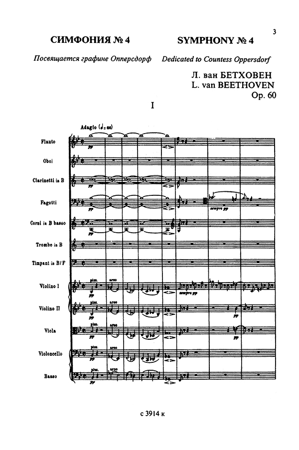 The Fourth Symphony В flat major, ор. 60, was composed during Beethoven's work at the Fifth one, which had been begun earlier. Beethoven was already long ago noticed to have alternated such dra- шайс symphinies as the Third, Fifth, Seventh, Ninth ones with the rather light Fourth, Sixth, Eigth symphonies. Robert Schumann likened the Fourth symphony to "the Grecian maiden of graceful aspect between two giants from the Northern countries". These are such elements as the spiritual integrity, boundless joy and lofty unruffled happiness, which the Fourth Sympphony is ruled by.