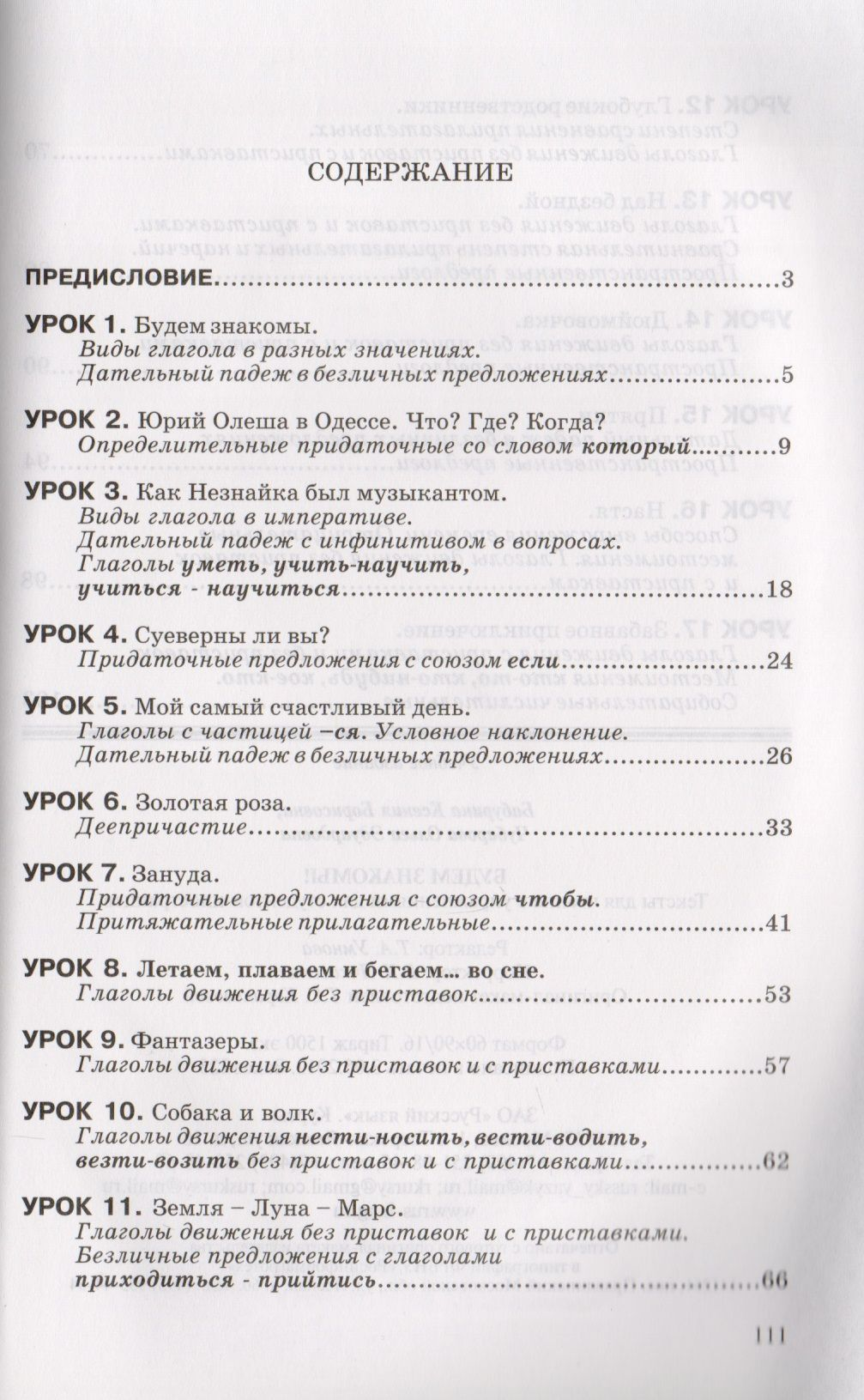 This manual is designed for foreign students who master Russian on the basic level. The main aim of the manual is the enrichment of vocabulary by learning grammar and reading interesting texts. The manual consists of two parts: a text book with exercises and a work book. The text book is structured as follows: exercises before texts which introduce the new lexical material, adapted texts of some modern Russian writers, exercises after texts which motivate the active speaking.