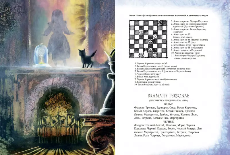Все ходы проиллюстрировала Екатерина Костина в своей невероятной волшебной манере, в которой есть свой секрет. Иллюстрации погружают нас в таинственный и сложный мир, придуманный Клайвом Льюисом Кэроллом. Исследователи его многоплановых текстов говорят, что в них зашифрованы математические и философские загадки. А дети, читая, прекрасную и удивительную историю о маленькой, любопытной, отважной и рассудительной Алисе, отвечают исследователям: "Не загадки это, а просто... чудеса!".