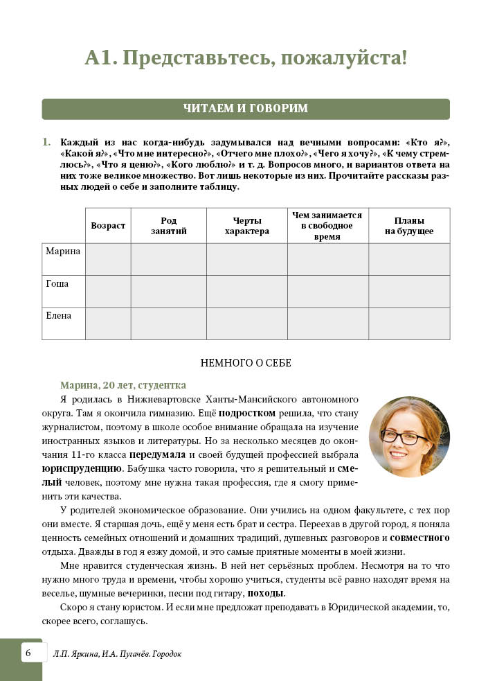 Posobie predstavljaet soboj pervuju stupen na puti k dostizheniju kommunikativnoj kompetentsii urovnja TRKI-2. Razdely knigi postroeny po tematicheskomu printsipu i nosjat modulnyj kharakter, dopuskajuschij ljubuju posledovatelnost ikh ispolzovanija v uchebnom protsesse. Vkhodjaschie v moduli bloki vkljuchajut zadanija, napravlennye na razvitie vosprijatija i ponimanija autentichnykh tekstov v ramkakh izuchaemykh na etom urovne tem. Suschestvennoe mesto otvedeno korrektsii grammaticheskikh navykov, a takzhe rasshireniju leksicheskogo zapasa uchaschikhsja. Podgotovleno na kafedre russkogo jazyka No 4 Instituta russkogo jazyka RUDN. Izdanie prednaznacheno dlja raboty v auditorii s prepodavatelem.
