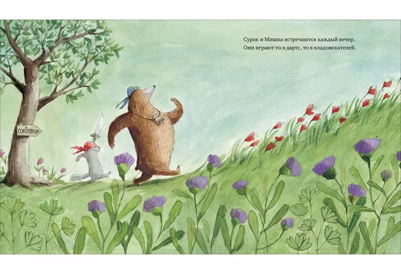Сурок и Мишка - лучшие друзья, они всегда проводят время вместе. Здорово играть в кладоискателей или петь и танцевать, как будто их показывают по телевизору. Но вот однажды вечером Мишка сказал Сурку, что позвал в гости Утёнка. Сурку совсем не хочется играть с Утёнком. Ни с Утёнком, ни с кем-то ещё: ведь все будут мешать ему дружить с Мишкой. Так что Сурок твёрдо решил, что Утёнок с ними играть не будет, - и он своего добьётся! К какой путанице приведут его хитрые планы?