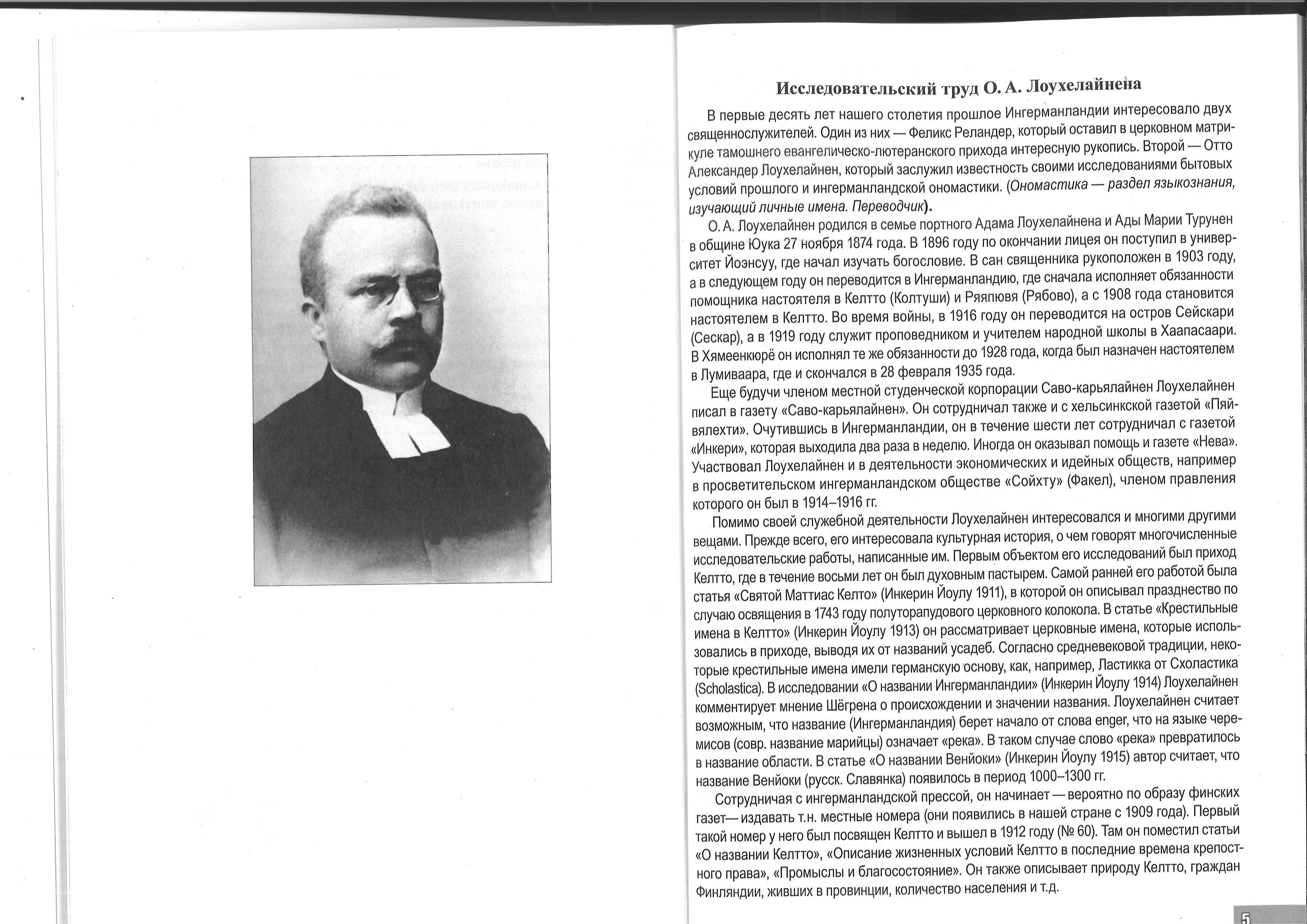 Список Отто Лоухелайнена рассказывает нам о том, какие фамилии были в употреблении в XVIII - начале XIX вв. и какие из них исчезли на начало XX в. Фамилии даны по приходам Ингерманландии.