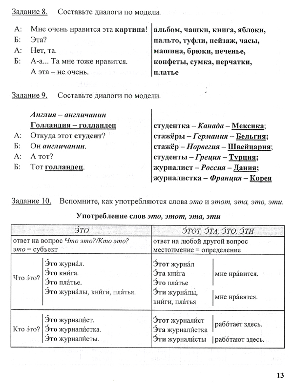 The exercises contain speech units used by the native speakers of Russian in every day situations. A working book is provided.