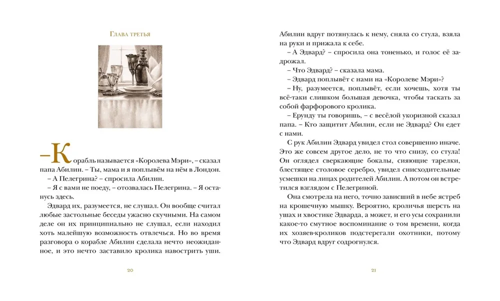 Фарфоровый кролик Эдвард однажды путешествовал со своей хозяйкой, девочкой Абилин, и упал с борта океанского корабля. С этой минуты жизнь благополучной игрушки переменилась: Эдварду предстоят трудные и опасные приключения. А мы становимся свидетелями настоящего чуда: даже бесстрастная фарфоровая кукла может научиться любить. Потери и утраты делают эту любовь только сильнее.