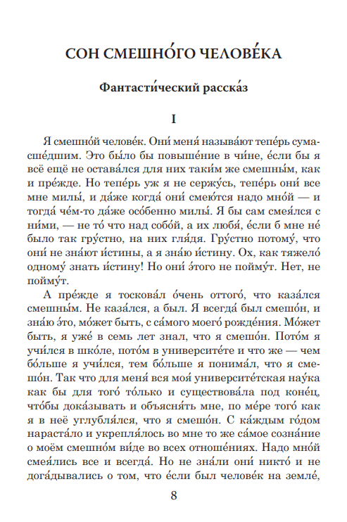 Dream of a funny man" by F.M. Dostoevsky. A reading book with assignments