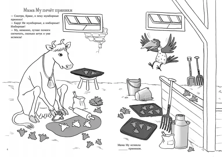 Весёлые и му-уютные рождественские головоломки с Мамой Му и Краксом. Найди дорогу в ламуринте, сосчитай мумбирные пряники и раскрась хлев для праздника святой Мусии. В середине книжки ты найдёшь чертёж рождественского домика Кракса. Склей его и укрась наклейками. Попробуй испечь свой собственный пряничный домик! С Рождеством!