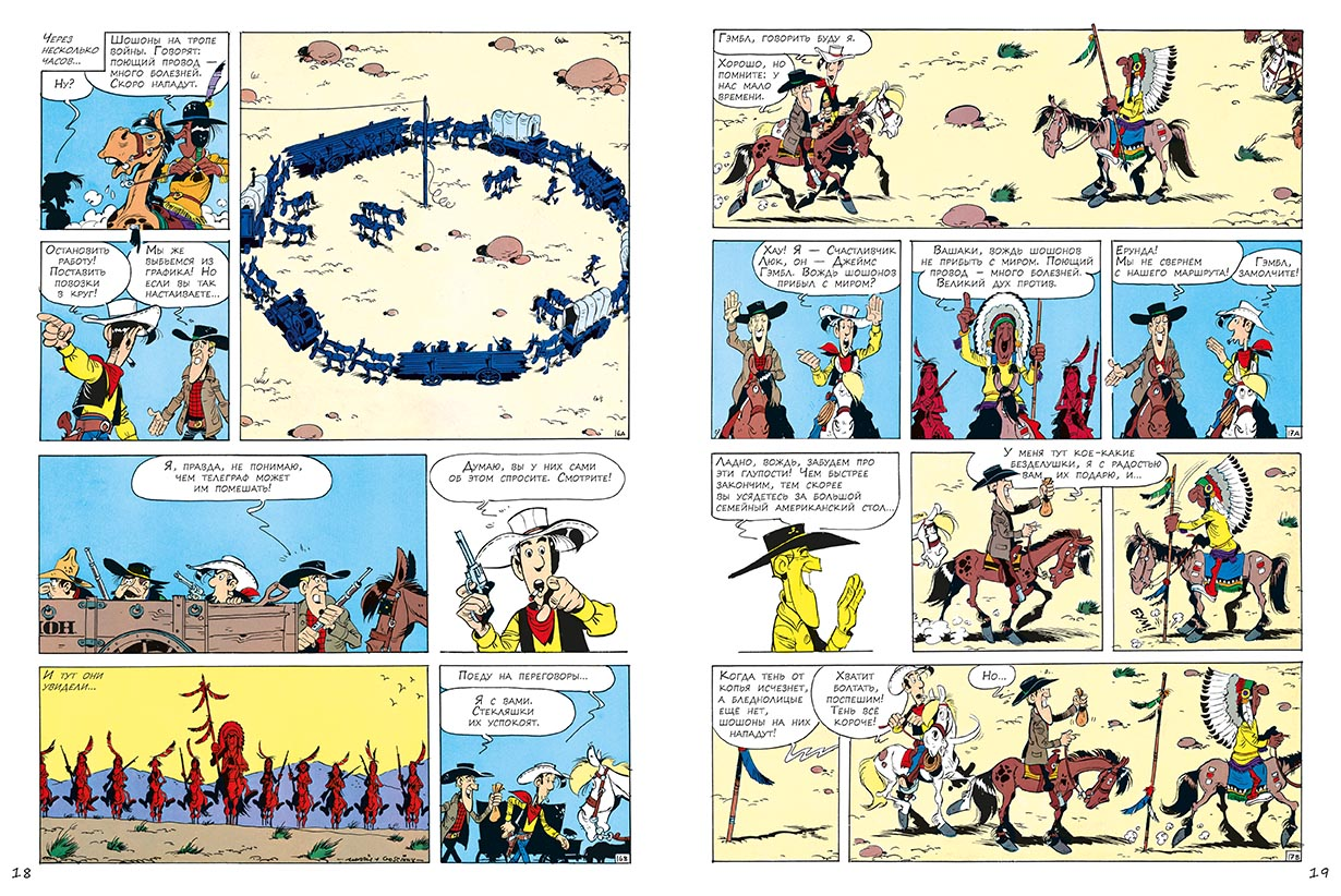 Особо стоит отметить удобный для чтения крупный шрифт, благодаря которому комиксы о Счастливчике Люке подойдут начинающим читателям и станут для них первой ступенькой к чтению романов Фенимора Купера и Майн Рида.