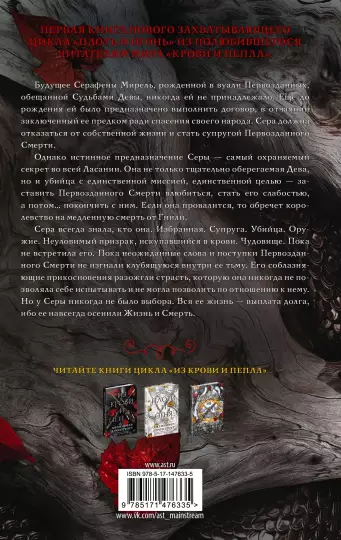 Но Серафина - не просто Дева. Она - ассасин, идеальное оружие, выкованное с целью уничтожить Первозданного Смерти. От ее успеха зависит судьба всего королевства, медленно пожираемого Гнилью. Но в ее планы вмешивается страсть, которой Сера не знала прежде, и это наполняет ее все новыми вопросами. Она просто оружие, или она может стать чем-то большим? Сможет ли она найти способ освободиться от оков своей судьбы и проложить свой собственный жизненный путь?