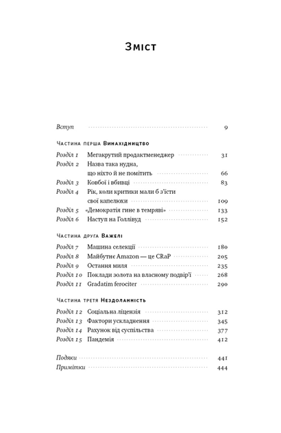 На фiзичнiй картi немає такої країни, та її вплив поширився на весь свiт, i це - iмперiя Amazon з капiталом понад трильйон доларiв. У книжцi Бред Стоун розповiдає не лише про винятковий стиль керування компанiєю та впровадження iнновацiйних iдей Джеффом Безосом, а й про сформульованi ним 14 священних принципiв лiдерства, яких вiн дотримувався й прищеплював своїм працiвникам.