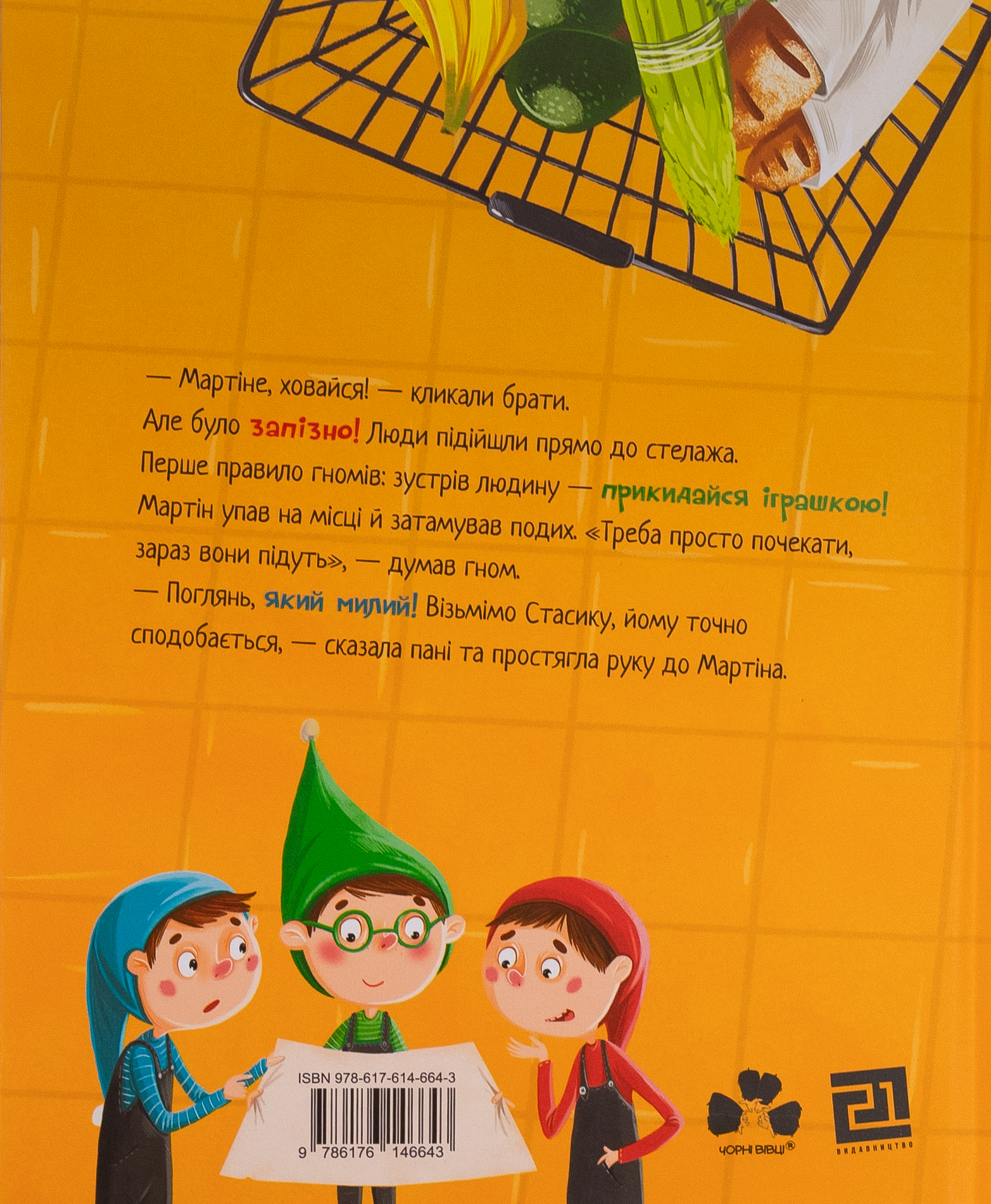 Щойно супермаркет "Мiсто" зачиняється - починається дещо надзвичайне. Брати-гноми Супер - Мартiн, Макс та Марк, якi цiлий день спали в комiрчинi за стелажем, беруться до роботи. Та щоночi вiдбувається щось непередбачуване! То зламається компресор в акварiумi з рибою, то НЛО лiтає над головою, а то й зовсiм лихо: гноми так захоплюються роботою, що не помiчають перших вiдвiдувачiв. Як брати дають раду з такими халепами, дiзнайтеся на сторiнках цiєї книжки! "Малi гноми, мешканцi великого супермаркету" - це iсторiя про дружбу, винахiдливiсть i взаємодопомогу, а тому обов'язково сподобається дiтям.