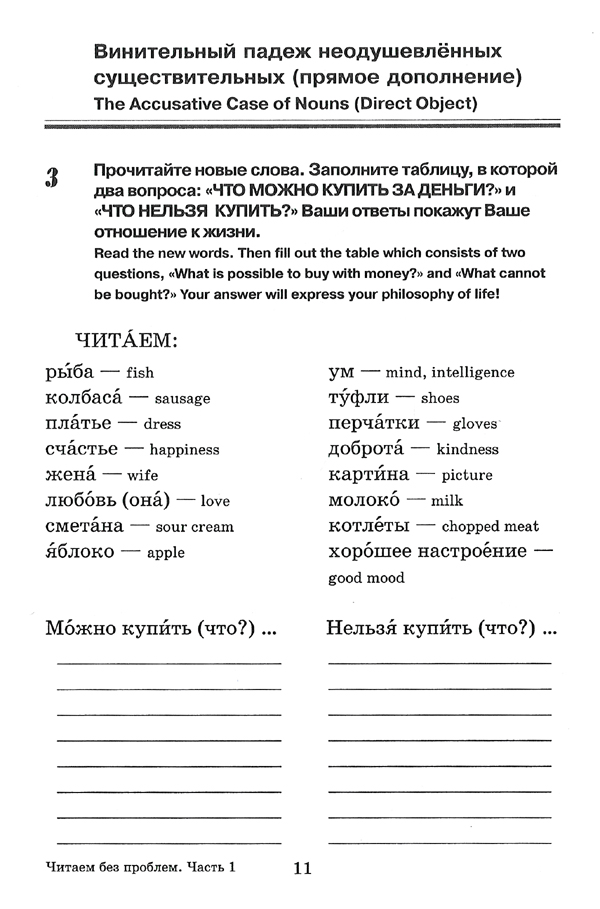 The book is for those who know Russian very little yet, but would very much love to start reading something basic in terms of the language, not the essence. Short and interesting author's texts, Russian-English dictionary for each text, exercises for classroom and independent work. Published in three volumes.