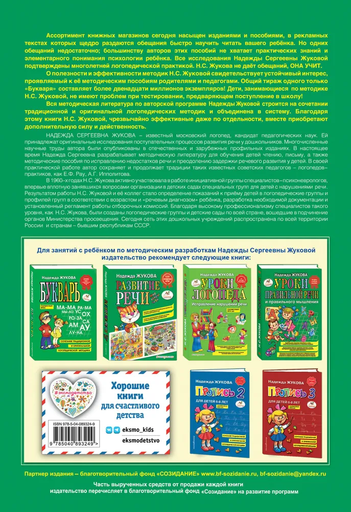В основе обучения письму по методики Надежды Жуковой лежит слоговой принцип русской графики. Для удобства обучения материал прописей разделен на 3 тетради, с которыми желательно работать последовательно. В первой тетради изложены правила обучения написанию букв А, У, О, М, С, Ы, X, Р, Ш, Л, Н; во второй -К, Т, И, П, З, Й, Г, В, Д, Б, Ж, Е; в третьей - Ь, Я, Ю, Ё, Ч, Э, У, Ф, Щ.Это прекрасное подспорье для дошкольников и детей, у которых написание букв вызывает затруднения. Прописи являются приложением к знаменитому "Букварю" Надежды Жуковой, который успешно используют все родители, воспитатели и педагоги
