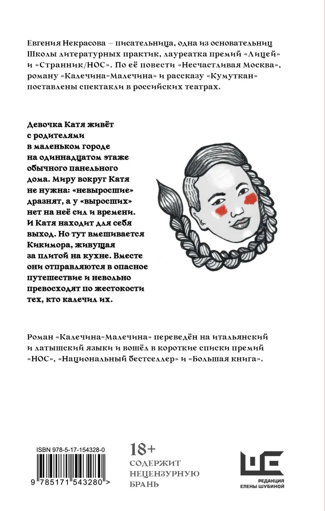 Evgenija Nekrasova - pisatelnitsa, odna iz osnovatelnits Shkoly literaturnykh praktik, laureatka premij "Litsej" i "Strannik/NOS". Po ejo povesti "Neschastlivaja Moskva", romanu "Kalechina-Malechina" i rasskazu "Kumutkan" postavleny spektakli v rossijskikh teatrakh.