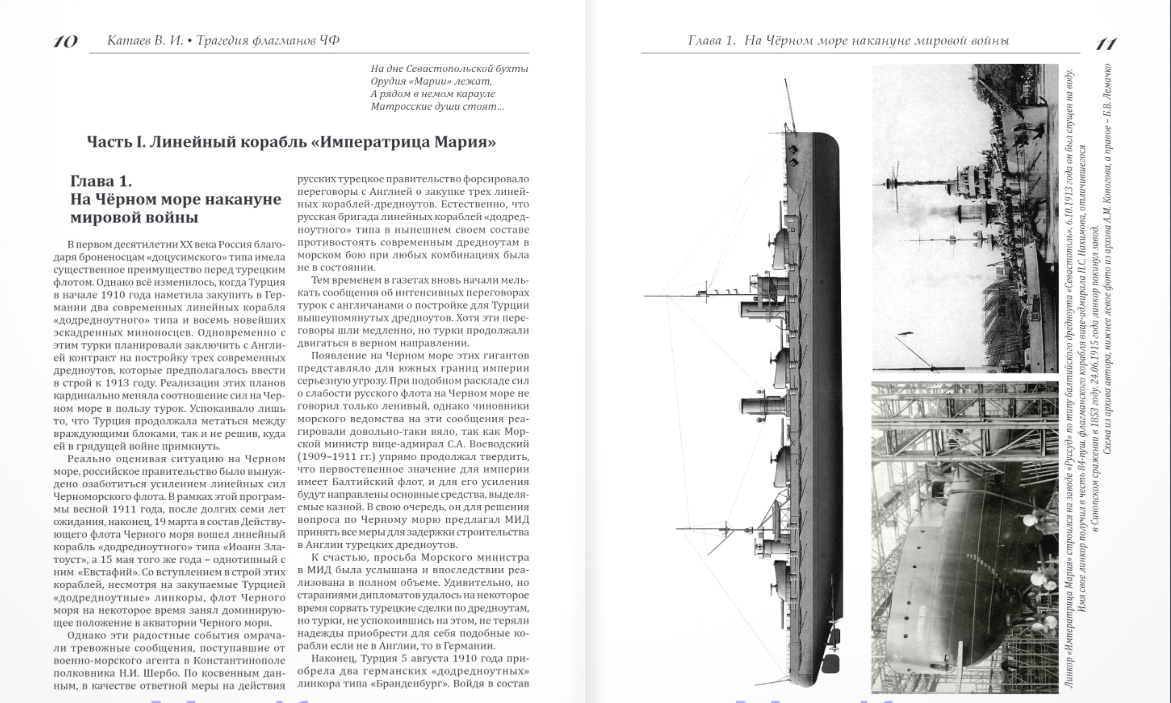 V novoj knige avtora, na osnove vvedennykh v nauchnyj oborot arkhivnykh materialov GPU USSR, OGPU i TSVMA, sdelana popytka proanalizirovat velichajshie tragedii Chernomorskogo flota v KHKh veke - gibel linkorov "Imperatritsa Marija" (1916) i "Novorossijsk" (1955). Vsplesk emotsij, perezhitykh avtorom v seredine 70-kh i 90-kh godov, posle vstrech s Annoj Vasilevnoj Kniper (Temirjova) i vyzhivshimi v katastrofe matrosami linkora "Novorossijsk" vo glave s byvshim vrio komandujuschego eskadroj CHF N.I. Nikolskim v 40-ju godovschinu tragedii, dal impuls dlja napisanija etoj knigi. Bolshim podsporem dlja raboty nad knigoj javilis raboty A.S. Elkina "Arbatskaja povest" i B.A. Karzhavina "Tajna gibeli linkora "Novorossijsk", a pozdnee i vvedennye v nauchnyj oborot arkhivnye materialy GPU USSR, OGPU i TSVMA, rabota nad knigoj poluchila opredelennyj kharakter. Na fone etikh velichajshikh tragedij avtor, pechaljas o tragicheskoj sudbe flagmana Chernomorskogo flota, posvjatil pamjati GRKR "Moskva" glavy v tretej chasti knigi. Krejser bolee soroka let dostojno nes boevuju vakhtu po okhrane morskikh rubezhej Otechestva. V aprele 2022 goda, nakhodjas na boevom postu, on i vstretil svoj poslednij chas. Pomimo etogo, v knige privedeny nekotorye detali, zaimstvovannye iz vospominanij i rasskazov moikh tovarischej i druzej, a takzhe rodstvennikov pogibshikh geroev - ochevidtsev tekh dalekikh sobytij.