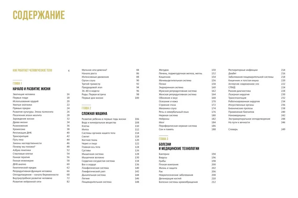 Благодаря чему на Земле зародилась жизнь? Каким образом мы наследуем гены своих родителей? Как взаимосвязаны органы нашего тела и какие функции они выполняют? Для чего нам нужны гормоны и насколько они важны? Эта энциклопедия раскроет тайны человеческого организма, начиная с деления клетки и заканчивая работой мозга и всех систем органов, которыми он управляет. Вы узнаете, как устроена память человека, почему мы различаем цвета, какой орган отвечает за чувство равновесия, в чем заключаются возможности генной инженерии и наномедицины и многое другое. Книга снабжена подробными красочными иллюстрациями - трехмерными моделями органов и их систем. Современная подача материала делает его восприятие простым и доступным. Энциклопедия содержит множество любопытных фактов и ценных сведений, которые будут полезны и интересны как детям, так и взрослым.