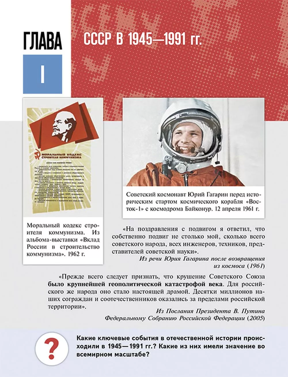 Izlozhenie I glavy uchebnika, okhvatyvajuschej period do kontsa 1991 g., postroeno s uchetom sereznogo vnimanija, kotoroe sovremennaja rossijskaja istoricheskaja nauka posvjaschaet istorii povsednevnosti. Ej adresovany spetsialnye paragrafy, dlja khruschevskoj epokhi vvoditsja i spetsialnoe ponjatie "revoljutsija blagosostojanija", kotoroe illjustriruetsja naibolee jarkimi primerami. Avtory ne lakirujut togdashnjuju dejstvitelnost, uchebnik upominaet i o tovarnom defitsite, i o sobytijakh v Novocherkasske v ijune 1962 g. No pri etom podcherkivajutsja i vazhnejshie pozitivnye peremeny v sovetskom obschestve, oschuschavshiesja i na bytovom urovne: rost zarplat, pensionnoe obespechenie, massovoe stroitelstvo besplatnogo zhilja, izmenenie struktury pitanija, shirokie vozmozhnosti zanimatsja turizmom i sportom.