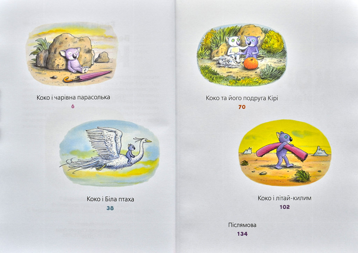 Це iсторiя про фантастичнi й кумеднi пригоди ведмежати Коко та його подружки Кiрi, якi живуть у Країнi Мрiй. Там вони знайомляться з Бiлою птахою, чорними мишами, драконом Рiкко та iншими дивовижними звiрами. Маленькi герої Ервiна Мозера, автора бестселерiв "Мануель i Дiдi", потрапляють у курйознi ситуацiї, знаходять чарiвну рожеву парасольку та лiтай-килим, багато мрiють i вчаться правильно загадувати бажання... Дорогою пригод вони знаходять щось значно цiннiше за казковi речi - пiдтримку i любов.