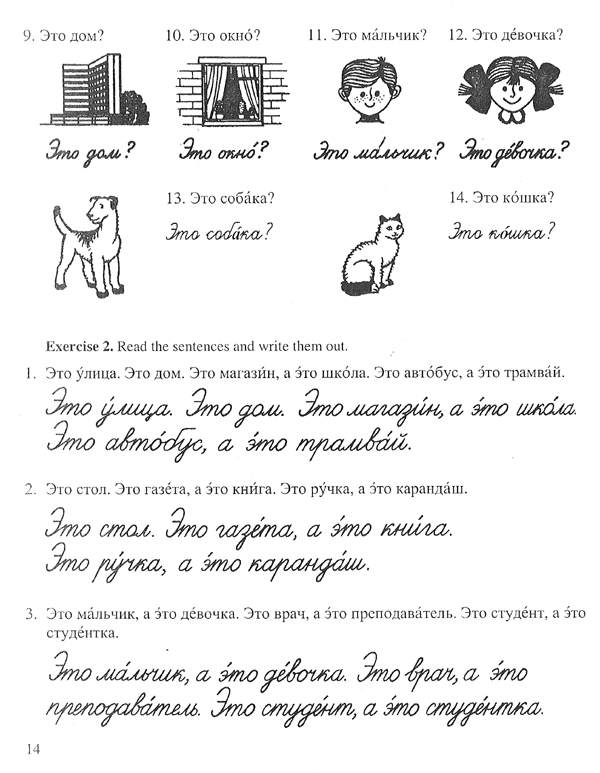This book is designed for beginners. It contains exercises aimed at the development of the basic Russian grammar and vocabulary. The book falls into two parts: an introductory vocabulary and grammar course and the main course.
