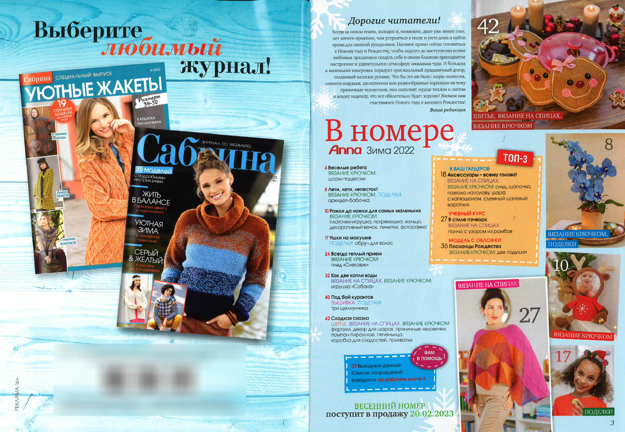 Populjarnyj zhurnal po rukodeliju - Anna. V kazhdom nomere zhurnala sobrany unikalnye proekty, vypolnennye v raznykh tekhnikakh - vjazanie krjuchkom, spitsami, vyshivka, ukrashenija iz bisera, pechvork i drugie. Na stranitsakh zhurnala vy najdete mnogo krasivykh i originalnykh proektov, vsevozmozhnye idei po sozdaniju podelok i aksessuarov dlja doma, elementov dekora. Vy smozhete sozdat velikolepnye podarki dlja vashikh blizkikh i druzej, ukrasit vash dom nepovtorimym ekskljuzivom.