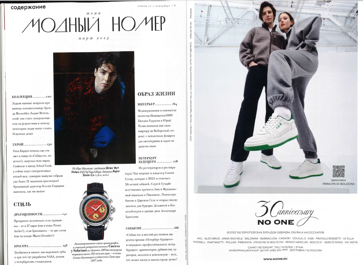 Sobaka.ru - a magazine about prominent people in St. Petersburg. City, fashion, art, culture, restaurants and gastronomy, beauty, design - all these topics are covered through fashion shoots and interviews with the heroes of St. Petersburg. Sobaka.ru combines both aspects of intellectual and glossy narrative.