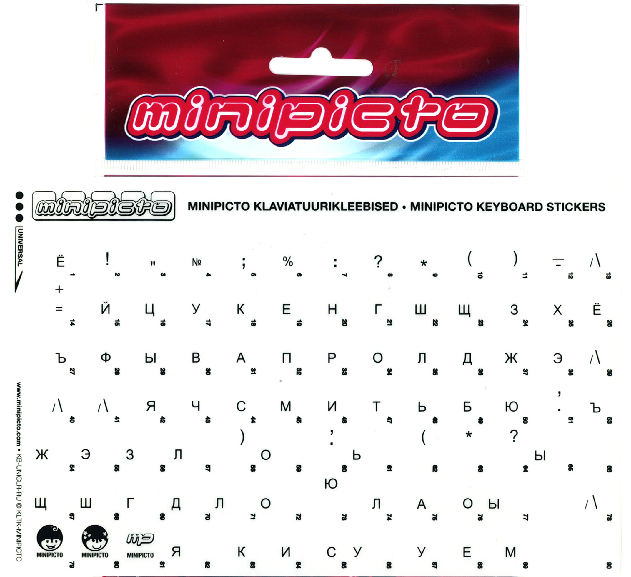 Ink on clear overlay for standard keyboards. Very handy transparent stickers with cyrillic alphabet to put on Latin keyboard. Original characters remain perfectly visible.