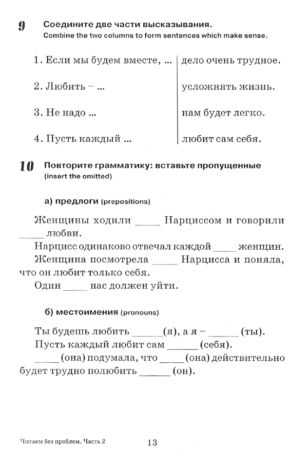 READING WITHOUT PROBLEMS. II Issue. The book is for those who know Russian very little yet, but would very much love to start reading something basic in terms of the language, not the essence. Short and interesting author's texts, Russian-English dictionary for each text, exercises for classroom and independent work. Published in three volumes.