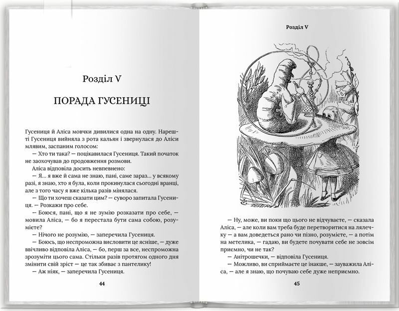 Книга збiльшеного формату, з канонiчними детальними чорно-бiлими iлюстрацiями сера Джона Теннiла