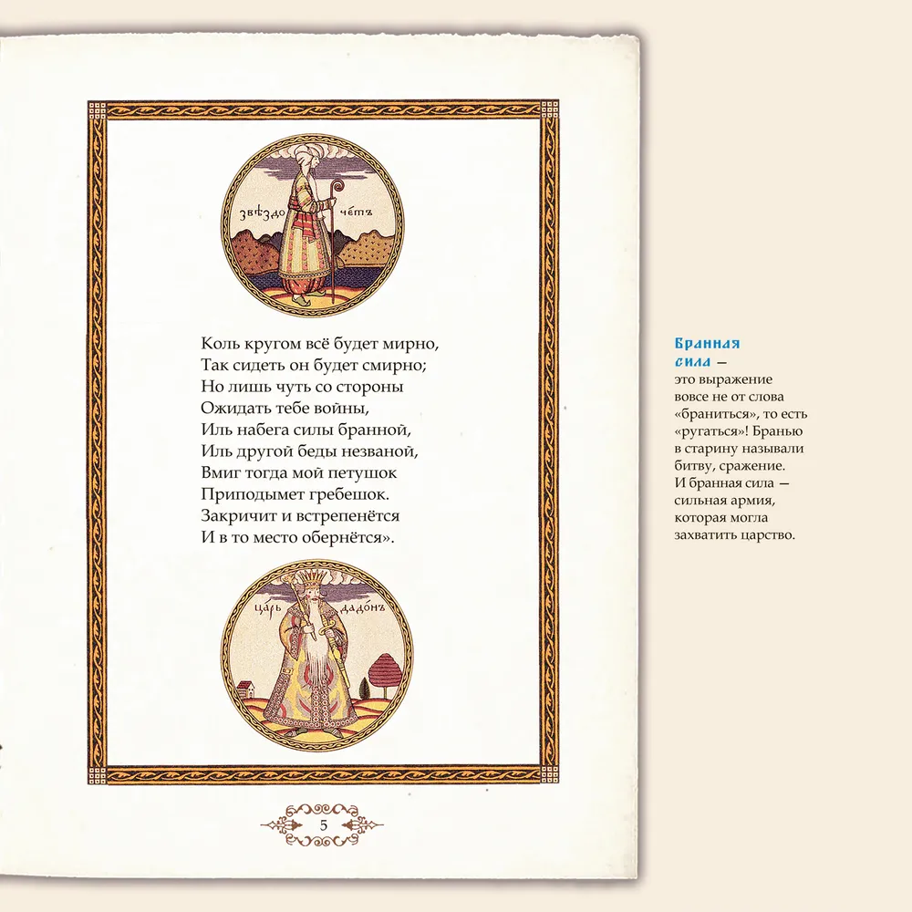 Книга "Сказка о золотом петушке. Иллюстрированный комментарий" Александра Сергеевича Пушкина - это издание, которое содержит текст знаменитой сказки, а также культурные комментарии и иллюстрации. В сказке рассказывается о молодом царевиче, который отправляется на поиски золотого петушка, который умеет предсказывать будущее. Царевичу предстоит пройти множество испытаний и битв, чтобы добиться своей цели. Комментарии к сказке помогают понять специфику русской культуры, ценности и понимание мира в то время, а также детали и аспекты, связанные с русской литературой и фольклором. Иллюстрации Ивана Билибина создают особенную атмосферу сказки и позволяют визуализировать ее сюжет. Формат "книга в книге" поможет объяснить ребёнку значение неизвестных ему слов и выражений, не отвлекаясь от чтения сказки Пушкина. Сказка прекрасно подходит для внеклассного чтения. Это издание будет полезно для всех любителей сказок и литературы, а также для школьников и изучающих творчество величайшего писателя золотого века русской литературы - Александра Сергеевича Пушкина. Также сказки Пушкина входят в школьную программу 1-4 классов. Учитесь вместе с нами!